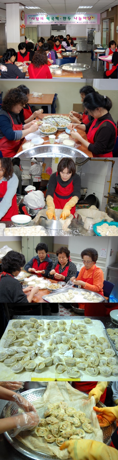 □ 내용: 재가 독거어르신 및 결식아동에게 전달 할 만두빚기 및