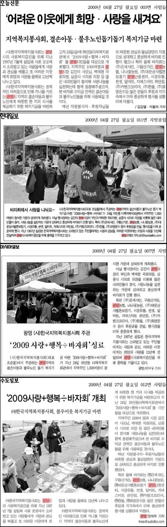 2009 행복+사랑÷ 바자회 성료 페이지 정보 작성자 최고관리자 댓글 0건 조회 6,222회 작성일 09-04-27 00:00 본문 2009 행복+사랑÷ 바자회 성료 목록 이전글2009어버이날 기념 "만수무강 효잔치" 성료 09.05.11 다음글경기도사회복지공동모금회 이동무료급식지원사업 선정 09.04.16
