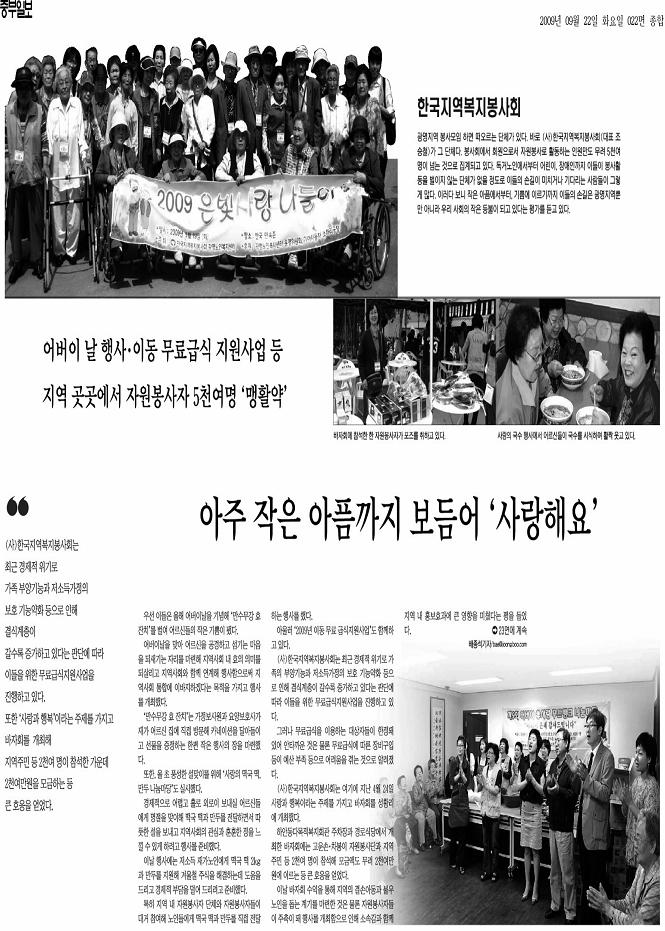 사랑나눔을 실천하는 한국지역복지봉사회 페이지 정보 작성자 최고관리자 댓글 0건 조회 7,426회 작성일 09-09-23 00:00 본문 사랑나눔을 실천하는 한국지역복지봉사회 목록 이전글봉사는 동정아닌 아픔고통을 함께 나누는 것 09.09.23 다음글사랑나눔을 실천하는 한국지역복지봉사회 09.09.23