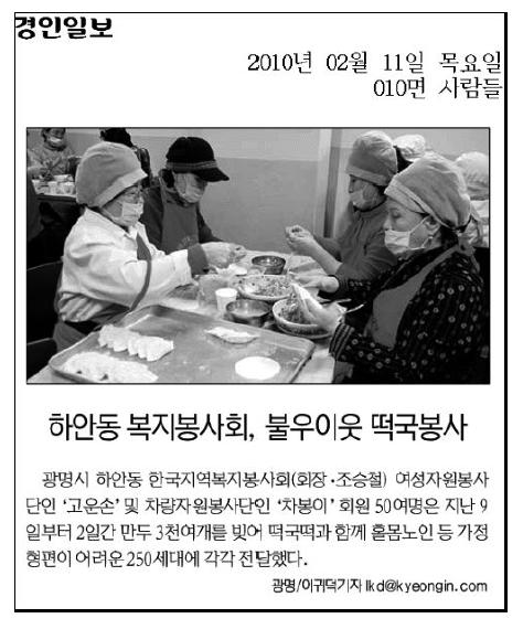 2010년 떡국떡 만두나눔마당 보도자료 페이지 정보 작성자 최고관리자 댓글 0건 조회 8,018회 작성일 10-02-16 00:00 본문 2010년 떡국떡 만두나눔마당 보도자료 목록 이전글2010년 떡국떡 만두나눔마당 보도자료 10.02.16 다음글2009 사랑의 김장김치 나눔마당 09.11.26